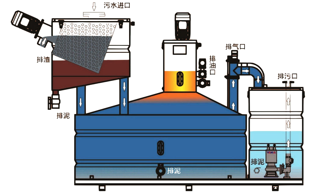 5、自動分離功能:可自動將餐飲廢水中的殘渣、油脂、污泥等物質進行分離,無需人工分離